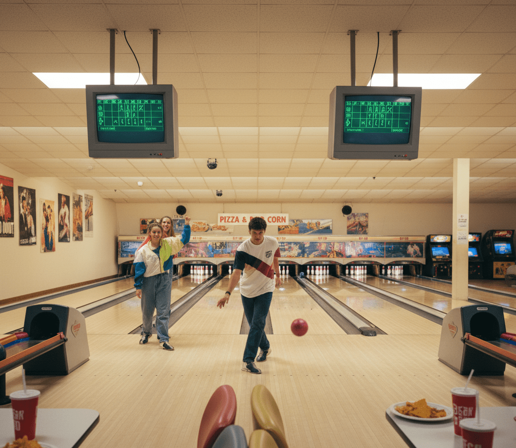 “A typical bowling center had 32 lanes. Each pair of lanes featured multiple PCs bolted inside a custom fiberglass enclosure, with large RGB monitors overhead and an amber display at floor level where players could enter their names. The lanes were networked together using one of the earliest networking protocols available.”